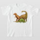 Design original de arte fina do Tyrannosaurus Rex, Stegosaurus e dinossauros Brachiosaurus pela artista Carolyn McFann do Two Purring Cats Studio impresso numa camiseta infantil de qualidade e facilmente personalizável. ideia de presente de excelente para aniversários, feriados ou qualquer ocasião!