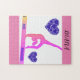 quebra-cabeça "I Love Gymnastics" com corações e nome personalizado.
