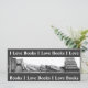 Um marcador com meu desenho original, a lápis do realismo, de um grupo de livros, alguns empilhados numa pilha e outros em pé ou inclinados.