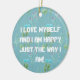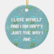 Eu me amo e sou feliz do jeito que sou, ornamento cerâmico. Este ornamento de amor próprio é um dever e um complemento para a sua coleção de ornamentos. Dar uma oportunidade perfeita para qualquer ocasião e para os seus entes queridos.