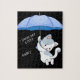Quebra-cabeça com um gatinho pendurado num guarda-chuva personalizado com o nome do gatinho. "Eu amo meu Gatinho"