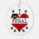 Cute I Love my Feral Cat, adorei ornamento de gato cerâmico de dois lados! O mesmo design em ambos os lados. Design apresenta um coração vermelho com um rosto de gato preto e estampas de pata! presente de excelente para amantes de os animais.