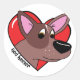 Cartoon Red Heeler autocolante com o Cachorro Australiano de Gado vermelho escondido tirando sua cabeça de um grande coração. Um grande olho, um pequeno e uma faixa de branco são suas marcas. Bons produtos para amantes de cães!