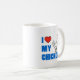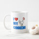 Eu Amo Minha caneca fofa Galinhas. Ele apresenta uma galinha de desenho animado e um grande coração. Excelente para qualquer dono de frango. Diga a todos que você ama suas galinhas no quintal. Uma caneca de excelente para um dono de galinha.