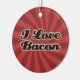Este produto foi feito para todo o amante do bacon! Caracteriza um fundo do redemoinho do bacon, com o texto "que eu amo o bacon" na parte superior.
