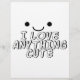 Um rosto, olhos e boca do estilo Kawaii. Texto e desenho a preto e branco.