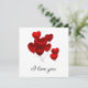 Lindo cartão eu te amo com design de balões vermelhos flutuantes.
