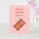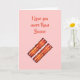 Este simples cartão é decorado com bacon na frente, e a mensagem fofa, eu amo você mais do que Bacon. Seria perfeito para um aniversário, Dia dos Pais, Dia das Mães, Dia dos Namorados ou qualquer ocasião especial.