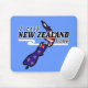 Este mousepad legal de Nova Zelândia caracteriza a bandeira de NZ e uma onda maori do estilo no fundo. Cor clara dos azul-céu com o texto "eu chamo a casa de Nova Zelândia.