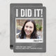 Convide familiares e amigos para a festa de formatura de seu ente querido com este convite ou anúncio moderno da PiPo Press. Um ousado "EU CONSEGUI" em tons neutros de lousa com uma foto revela o quanto você se orgulha de seu formando. Perfeito para um convite de festa ou um anúncio de formatura do ensino médio, universidade ou pós-graduação. Personalize com o nome da sua escola em uma escolha de cores e este convite está pronto para ser enviado!