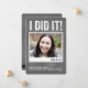 Convide familiares e amigos para a festa de formatura de seu ente querido com este convite ou anúncio moderno da PiPo Press. Um ousado "EU CONSEGUI" em tons neutros de lousa com uma foto de abertura diz a todos o quanto você está orgulhoso de seu formando. Perfeito para um convite de festa ou um anúncio de formatura do ensino médio, universidade ou programa de pós-graduação. Personalize com o nome da sua escola em uma escolha de cores e este convite está pronto para ser enviado!
