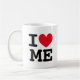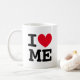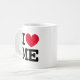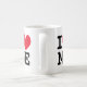 Eu coração a caneca de café para casa ou escritório. Faça sua própria xícara engraçada. Ideia personalizada de presente para ele ou para ela. Coração vermelho com modelo de tipografia negra. As cores do design e da caneca podem ser alteradas.
