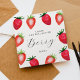 Este cartão super-doce é a maneira perfeita de dizer para se dar bem logo. A design apresenta morangos aquosos com uma composição tipográfica moderna, fácil de personalizar. A parte traseira da placa corresponde à parte frontal e também tem um espaço para você escrever manualmente esse nome especial de alguém.