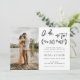 Este divertido anúncio de casamento também serve como convite para a recepção de casamento. Caracteriza "Eu faço o mesmo também" em letras cursivas pretas. Personalize com sua foto.