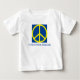 Esta camisa tem um símbolo de paz, com as cores da bandeira da Ucrânia. O texto diz "EU FICO COM A UCRÂNIA."