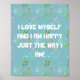 Eu me amo e sou feliz do jeito que sou, poster. Um poster ama prazer. Preencha seu espaço doméstico ou de escritório com vibrações positivas. Faz um presente perfeito para uma ocasião especial e seus entes queridos.