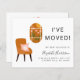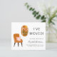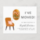 Boho chic new home amigável e mudança de endereço anúncio comovente apresentando ilustrações abstrato de uma cadeira de terracota com um travesseiro floral rosa adjacente a uma janela olhando para uma paisagem de terracota de flores cor-de-rosa e um sol. Na frente, personalize com seu nome, o texto "Eu Movi" e seu novo endereço. No verso, você pode personalizar seu anúncio com mais detalhes e incluir um número de telefone e e-mail, se desejar.