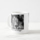 Close up de uma cara do sheltie do sono em uma caneca de café com "eu não faço manhãs"