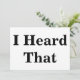 Cartão branco padrão com "Eu ouvi isso" em uma fonte grande e negrito em ambos os lados.