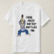 Camiseta com um personagem de desenho animado louco segurando um machado e dizendo: "Eu ouço vozes e eles não gostam de você". Esta camisa é ideal para pessoas que gostam de humor escuro.