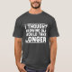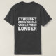 Eu pensei que crescendo velho tomaria uma camisa mais longa. Esta camisa destaca o dilema do envelhecimento: enquanto os aniversários voam por nós nós não realizamos como rapidamente o tempo está voando. Um minuto nós somos novos, e o seguinte nós crescemos velhos! Aprecie o passeio.
