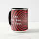 Deixado todos saiba que você pode os ajudar que usam a hipnose e hypnotherapy com estes caneca da espiral do hypno-disco/copo vermelhos e pretos.