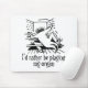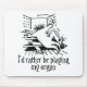 Um mousepad com uns desenhos animados que mostram à opinião traseira um organista que joga frantically afastado no órgão com o subtítulo "eu preferencialmente estaria jogando meu órgão" escrito abaixo. Fundo e imagem e texto brancos no preto.