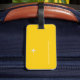 Um na moda e design personalizado com a imagem gráfica de um pequeno avião branco em cor de fundo amarelo-quente, para identificar seus pertences ao viajar pelo mundo