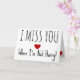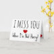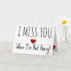 Eu sinto sua falta mesmo quando não estou excitado - Dia de os namorados engraçado. Avise-a como ele é especial com este cartão de Dia de os namorados. Típica de tendências e um doce coração na frente. 1 - Você pode facilmente alterar ou excluir o texto externo e interno e modificá-lo conforme desejar. clicando em PERSONALIZAR - 2 - Você pode facilmente alterar as cores externa e interna. clicando em PERSONALIZE == Editar usando a Ferramenta Design - 3 - Você pode facilmente alterar a Fonte externa e interna. clicando em PERSONALIZE == Editar usando a Ferramenta Design -