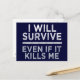 "Eu vou sobreviver - mesmo que me matar". Adicione seu próprio texto / imagem no verso. Veja na minha loja mais itens com este design.
