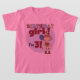 Uma menina adorável com cabelo preto e um vestido vermelho e branco verificado, um cupcake, os balões, e o texto que lê do "a menina aniversário mim é 3!" no camiseta do aniversário de 3 anos, nos bodysuits, nas canecas, nos ímãs, nos cartões, nas etiquetas, nas sacolas do aniversário, e em mais!