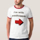 Esqueça sobre "mim são com estúpido" este t-shirt judaico engraçado do humor diz que "eu sou com Meshuggah" com uma seta. Para rachar Sure alguns sorrisos.