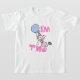 Uma figura menina da vara em um vestido cor-de-rosa e o chapéu do partido com um balão e um texto cor-de-rosa que me leia "são dois" em t-shirt, em bodysuits, em cartões, em etiquetas, em sacolas, em ímãs, e em mais do segundo aniversário.