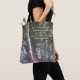 Linda bolsa de design com foto dos raios solares brilhando entre um pinheiro. Esta bolsa tem uma escritura impressa de uma das mais lembradas na Bíblia; "Eu sou o caminho, a verdade e a vida."