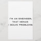 Sou um engenheiro. Isso significa que eu resolvo problemas. Engraçado, legal e simples design. Minimalismo. Legal presente para seus amigos engenheiros.