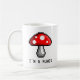 Uma caneca com um design vermelho do cogumelo do pixel em cada lado. O texto lê-me "é fungos" embora pode ser mudado.
