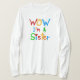 Design de texto multicores colorida WOW Eu sou uma camiseta Irmã, capuzes, canecas, botões, cartões, adesivos, guardas, ornamentos, chaveiros e outros presentes de excelente e roupa para irmãs!