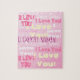 Texto "Eu te amo" em corações cor-de-rosa com um olhar de alivio. Quebra-cabeça de serra.