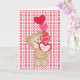 Sem dúvida, este ursinho marrom tem seu cheio de patas. Afinal, ele está carregando cinco corações Namorados com uma mensagem. "Amo-Te À Lua E Volta". O fundo é um padrão formado por círculos vermelhos e cor-de-rosa, com um coração branco no centro. O texto no dentro pode ser personalizado.