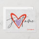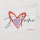 Este adorável "je t'aime" (eu te amo em francês) com o roxo e os corações vermelhos é uma design perfeita para mostrar seu amor com um cartão postal. Você também pode personalizar o cartão postal com o nome de sua escolha para tornar sua atenção mais especial. (presente)