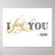 Design de tipografia em letras negras com amor em bela design de caligrafia, lê: "EU AMO VOCÊ." (amor no estilo de folha de ouro angustiado). Abaixo está "Deus".