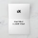 Aqui está um cartão divertido que diz "Eu amo você" da maneira mais ousada e marcante possível. Temos grandes impressões de batom vermelho, "Eu Amo Você" em Código Morse na frente e no topo interno temos o símbolo de beijo emoticon. É sedutor, divertido e totalmente impossível alguém não entender a dica! Mas também é personalizável. Você pode ajustar os gráficos e remover os lábios, ícone ou código morse se quiser. Basta clicar em "Personalizar" para acessar as opções de tamanho, texto, etc.