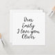 Bonita modelo de texto personalizável: Querida Emily, eu te amo, Alexander. Clique em editar e alterar apenas os nomes ou o texto inteiro.