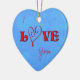 Diga eu te amo com um ornamento dado forma coração e um fundo azul dos corações. Adicione sua mensagem pessoal na parte traseira, ou suprima-a para a parte traseira da planície. Se você gostaria da imagem na parte de trás do ornamento também, contactar-me por favor me e estará feliz criar-lo para você. Se você precisa a ajuda ou tem quaisquer pedidos, contacte-me por favor. Esta imagem está disponível em muitos produtos em minha galeria.