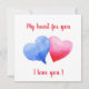 Design minimalista eu te amo. Cor d'água desenhada à mão, vermelho e coração azul. Itens correspondentes disponíveis.