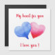 Design minimalista eu te amo. Cor d'água desenhada à mão, vermelho e coração azul. Itens correspondentes disponíveis.