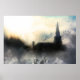 Poster cristão da igreja na Carolina do Norte enquanto os pássaros voam ao redor da torre. Linda arte inspiradora de Cinza Artus