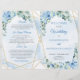 Elegante e empoeirado programa de casamento floral de eucalipto azul-d-água Um design de boho realmente incrível que tem atraído todas as comemorações e eventos nos últimos anos, nomeadamente um buquê lavado - uma mistura de coroa verde de eucalipto, elegantemente misturada com flores de rosas azuis empoeiradas e tecida em falso quadro geométrico de ouro. Você pode ter certeza de que com esta design para sua papelaria para o evento, você será moderno e extremamente impactante, e seu evento será lembrado por muito tempo. O design apresenta aquarela pintada manualmente, folhas frescas e verdes de eucalipto misturadas flores azuis, poeirentas, rosas, e delicadas tecidas à volta - tão moderno, ultimamente, terrário. Todo esse buquê de folhas frescas de eucalipto e flores rosas azuis envolve elegantemente as inscrições no centro, como se fosse um abraço de amor tenro. Nesta bela design de tendências, preparamos todos os elementos necessários para a sua Festa de Boho - tais como convites para casamento, Convites de chá de panela, noivado, elopemento, aniversário, jogos, posters de boas-vindas, sinais de mesa e muito mais, para que você possa ter um conjunto completo deste design boho excepcional com uma aquarela de eucalipto verde misturada de flores azuis empoeiradas.