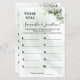 Onde eles estavam? Jogos das versões inglesa e espanhola incluídos (frente e verso). Adicione Bride & Groom para ser o Nome no modelo para as versões em inglês e espanhol. Para obter mais personalização (alterar texto, adicionar ou excluir o número de fotos, cor da fonte, estilo da fonte ), clique em personalizar, role para baixo e clique no link "clicar para personalizar ainda mais". COMO REPRODUZIR: Exibe fotos da Noiva e do Groom em diferentes locais e as numera. Os convidados anotam o palpite de cada foto e a pessoa com as respostas mais corretas ganha!