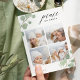 Compartilhe cartões de natal com estes cartões chic de colagem de fotos de Natal com quatro de suas fotos quadradas favoritas emolduradas no topo e no fundo pelas folhas pintadas de eucalipto aquoso em verde pastel. "Paz na Terra" aparece no topo direito numa mistura elegante de caligrafia e cartazes modernos, e o ano está bem preso a uma das folhas. Personalize com seu nome de família no canto inferior esquerdo.
